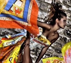La scelta è caduta su di un capo, il foulard, che gode di molteplici declinazioni d’uso. Un foulard s'indossa, va perlopiù a valorizzare e proteggere la parte più metafisica del nostro corpo, posto tra la parte meccanica del movimento e la sede dell'intelletto; esso pertanto attende naturalmente ad un ruolo di primo piano. Nell'immaginario collettivo, l'Italia è sinonimo di culla delle Belle Arti e del Buon Cibo.
