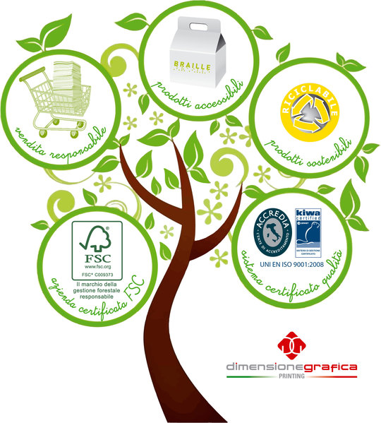 Mission di Dimensione Grafica è la progettazione e realizzazione di packaging e vario materiale cartaceo per il moderno mercato dei beni al consumo con una visione etica, sociale ed estetica; il tutto implementato nel nuovo progetto Pack ESE (Estetico Sociale Etico) contenente sia i valori ambientali (certificazioni FSC Forest Stewardship Council Italia e Catena di Custodia COC) che etici (Certificazione etica).